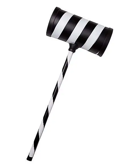 Smash this Halloween like the killer clown you are with this black and white striped hammer! The oversized weapon is perfect for completing your harlequin or jester look.
