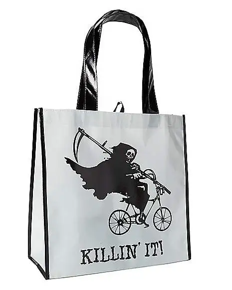 Reap some sweet rewards this Halloween by stashing your trick or treat sweets in this Killin’ It tote. Slay it this Halloween!